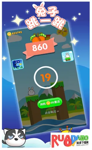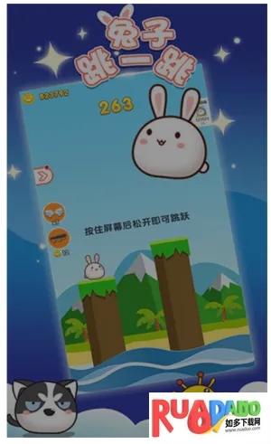 你说的是那种控制小白兔跳跃闯关的游戏吧,它就叫兔子跳一跳。这游戏超好玩,能让你尽情享受闯关乐趣。在游戏里,你只需点击屏幕就能控制兔子跳跃,精准落在前方木桩上,躲避胡萝卜等障碍物,收集金币和胡萝卜。收集的金币可解锁新角色皮肤和道具,超有意思。沿途收集的胡萝卜能帮你不断前进,挑战更多关卡。游戏画面精美,是卡通画风,兔子形象呆萌可爱,还有独特配音,趣味性十足。它节奏轻快,关卡魔性,可玩性极强。操作简单易上手,老少皆宜,氛围轻松愉悦,还有大量悦耳背景音乐,能让你十分放松。玩这个游戏,能给你带来无尽欢乐,畅享轻松愉快的游戏时光,快去下载体验吧!