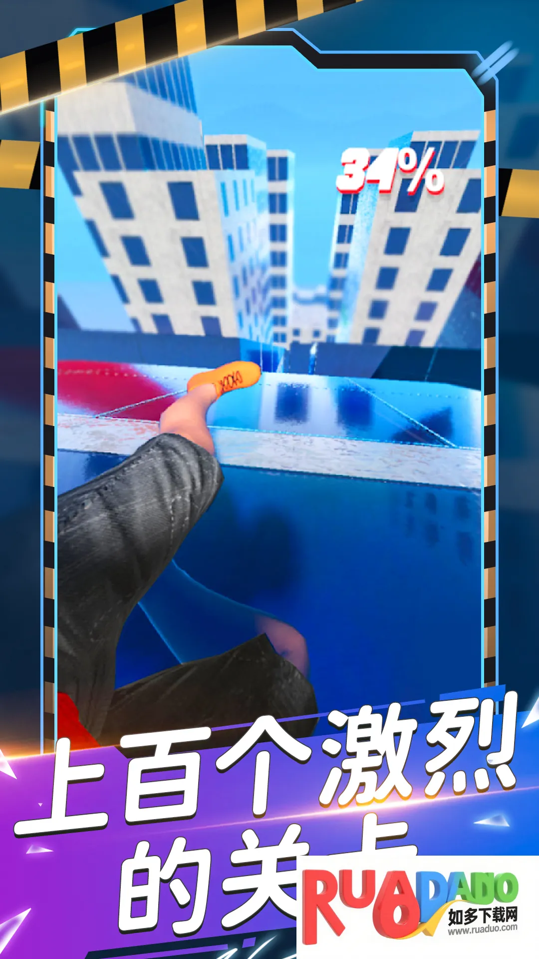 2. 玩法简单,通过滑动控制角色跳跃、滑铲与转向。