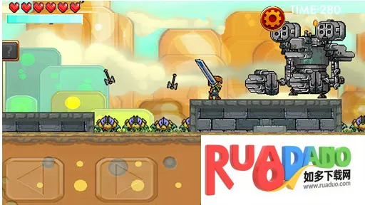 在游戏里,你将扮演勇者,手持重剑斩杀各种怪物。操作简单,通过方向键控制移动,B 键攻击,A 键跳跃。沿途收集金币升级道具,还有多种武器装备可自由搭配,像炸弹、弓箭、投掷匕首、蒸汽动力装甲等。