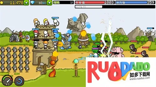 3. 城堡等级越高,可放置英雄角色越多,防御力越强,需不断提升防御力量应对变强的敌人。