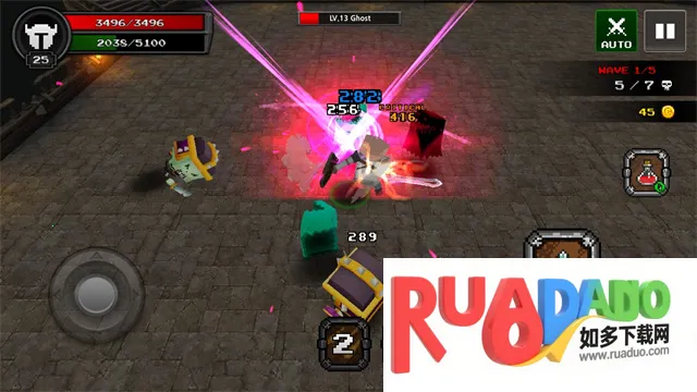 1、复古像素美学:方块角色与2D像素场景怀旧味浓,技能特效靠色块碰撞展现冲击力,画面简约辨识度高,动作帧数足,视觉反馈清晰。