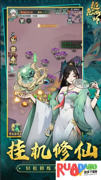 3. 支持放置挂机闯关,应对怪物袭击,画面精美,有独特的修仙世界探索感。