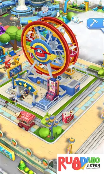 1. 游戏以动画片为原型,玩家能打造专属的超级飞侠主题乐园,解锁并与乐迪、多多、小爱等角色互动,让他们帮忙修建设施,吸引游客。