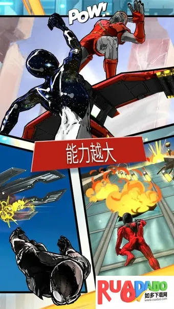4. 有独特游戏设置,能与超级反派战斗,进行飞荡、攀爬、跳跃,剧情模式丰富,赛事模式精彩,还有连贯情景冒险,可在无限模式中与其他玩家比赛上榜。