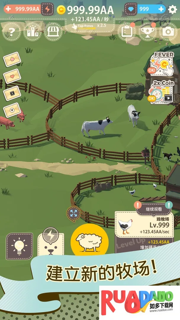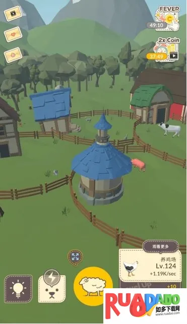 2. 新农场解锁有独特造型,升级有更多提升,还能获每秒自动收入,助玩家积攒资源。
