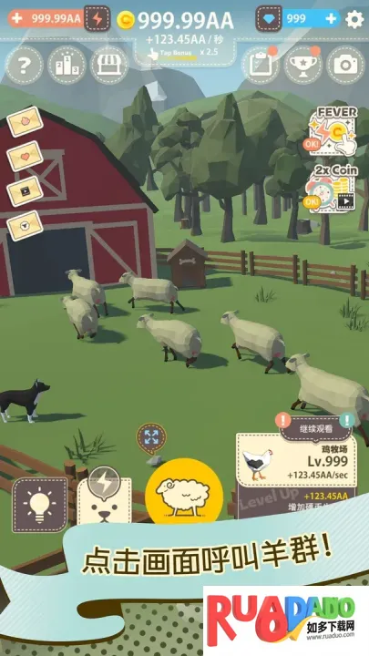3. 牧羊场点击有资源奖励,助玩家短时间获大量资源,目标是经营农场,让其热闹起来。