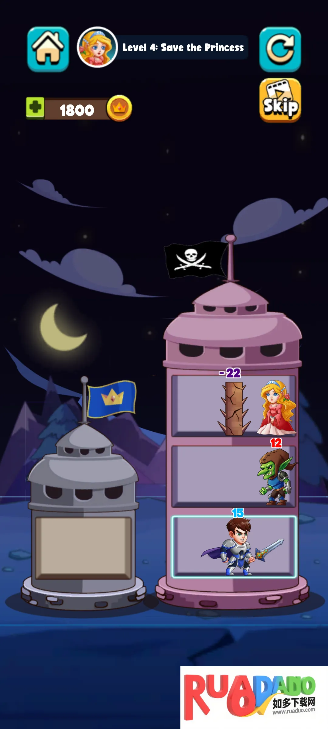 英雄城堡对决中,公主身陷险境,你作为国王麾下士兵,要参与惊险近战死斗救她。需仔细观察关卡、巧妙思考步骤,运用数学技巧,如加减运算,关注对手生命值找攻击策略,安全登顶完成任务。