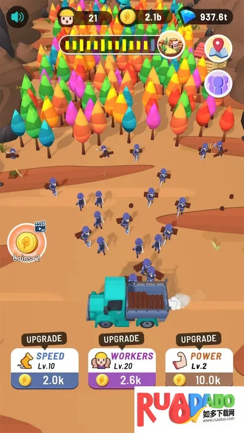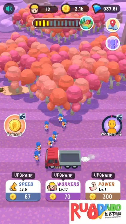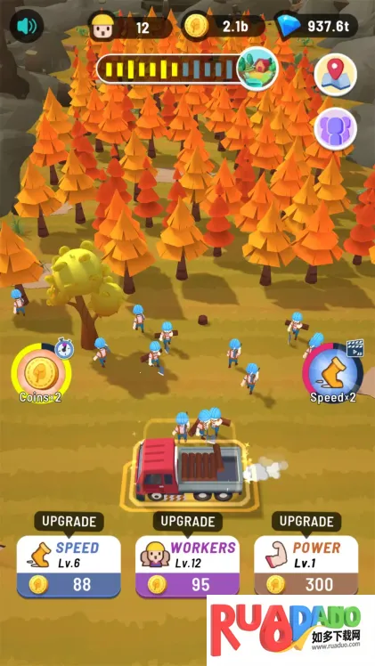 2. 可选择不同季节、森林伐树,还能升级伐木工提升效率。