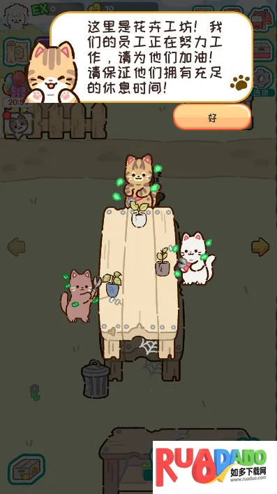 2. 雇佣独一无二的可爱萌猫助手,协助在家园工作。