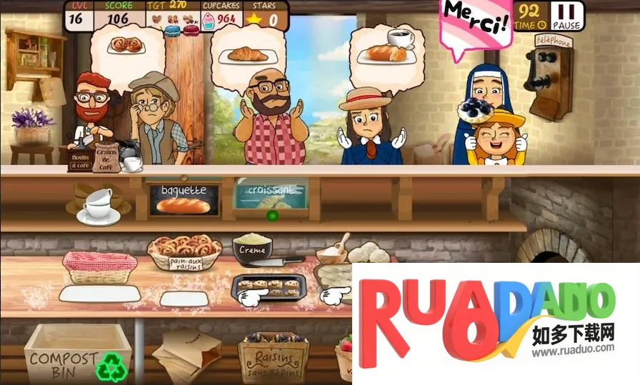 4、面对销售目标与顾客需求的双重挑战,感受经营中的竞争与发展压力,累积资金扩张店面,甚至开设分店,圆面包店帝国梦想。快来打造属于你的美味面包王国吧!
