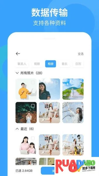 2、可一键传输图片、视频、联系人等多种数据,不消耗流量,两机直传,安全有保证。