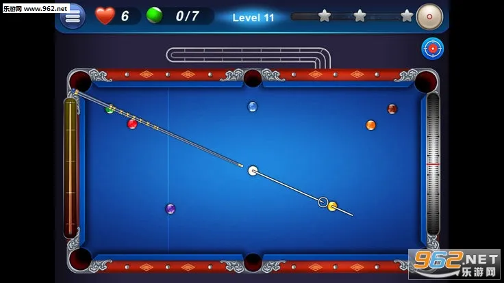 2、逼真3D物理引擎:运用先进技术和声效模拟,精准还原台球撞击轨迹、力度反馈和旋转效果,带来原汁原味的台球体验。