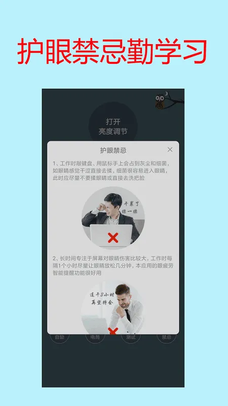 3. 为用户提供专业护眼方案,能保护视力、缓解眼疲劳,还可定时自动提醒,做到眼睛全方位护理 。