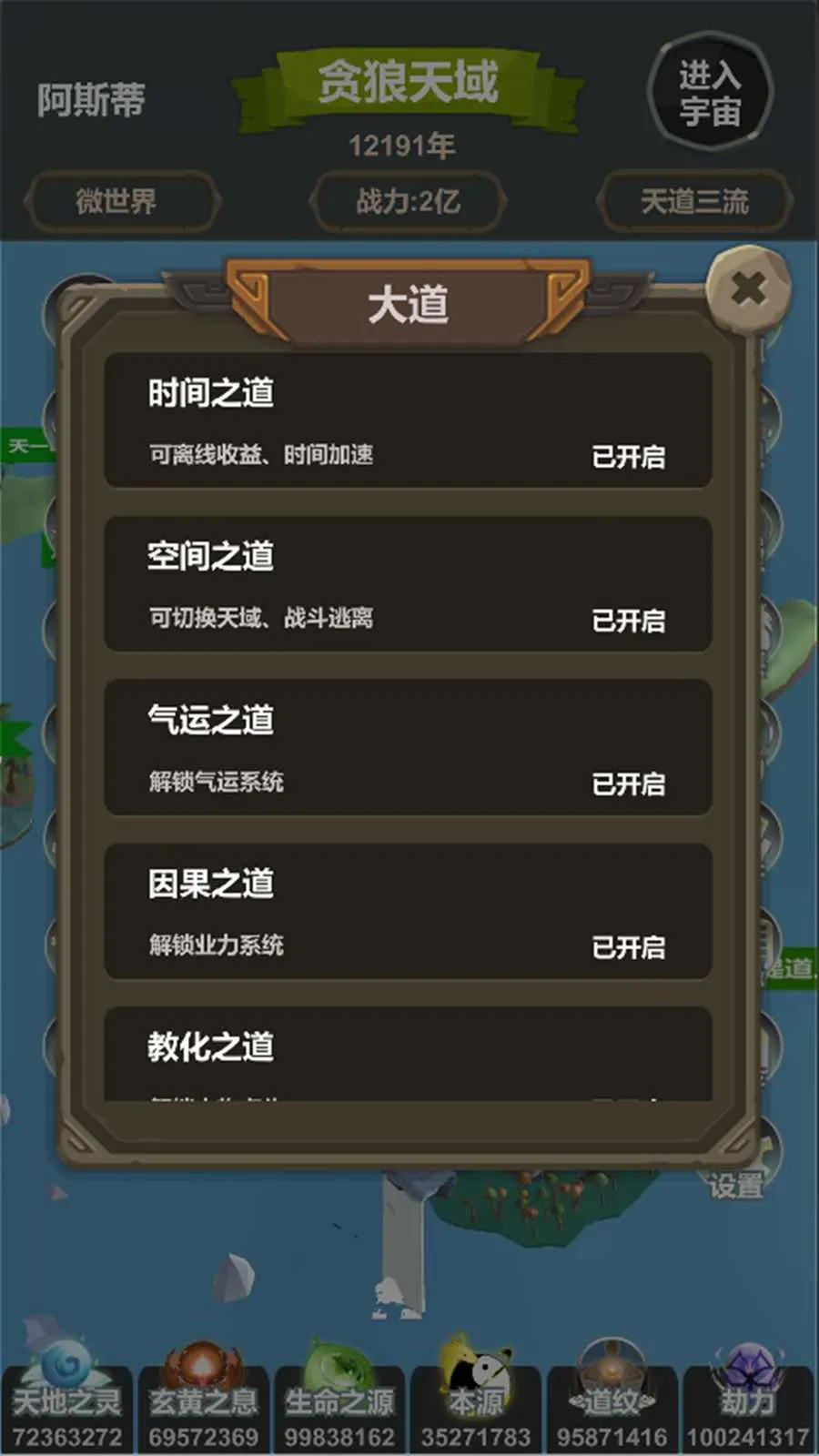 《天道模拟》是一款模拟经营手游。玩家化身天道,于荒芜混沌中开辟世界,收集资源创造生灵、灵宝等,解锁主宰之力。玩法有放置解压、点击操作,还有任务、合作竞争等,能自由塑造独特世界 。