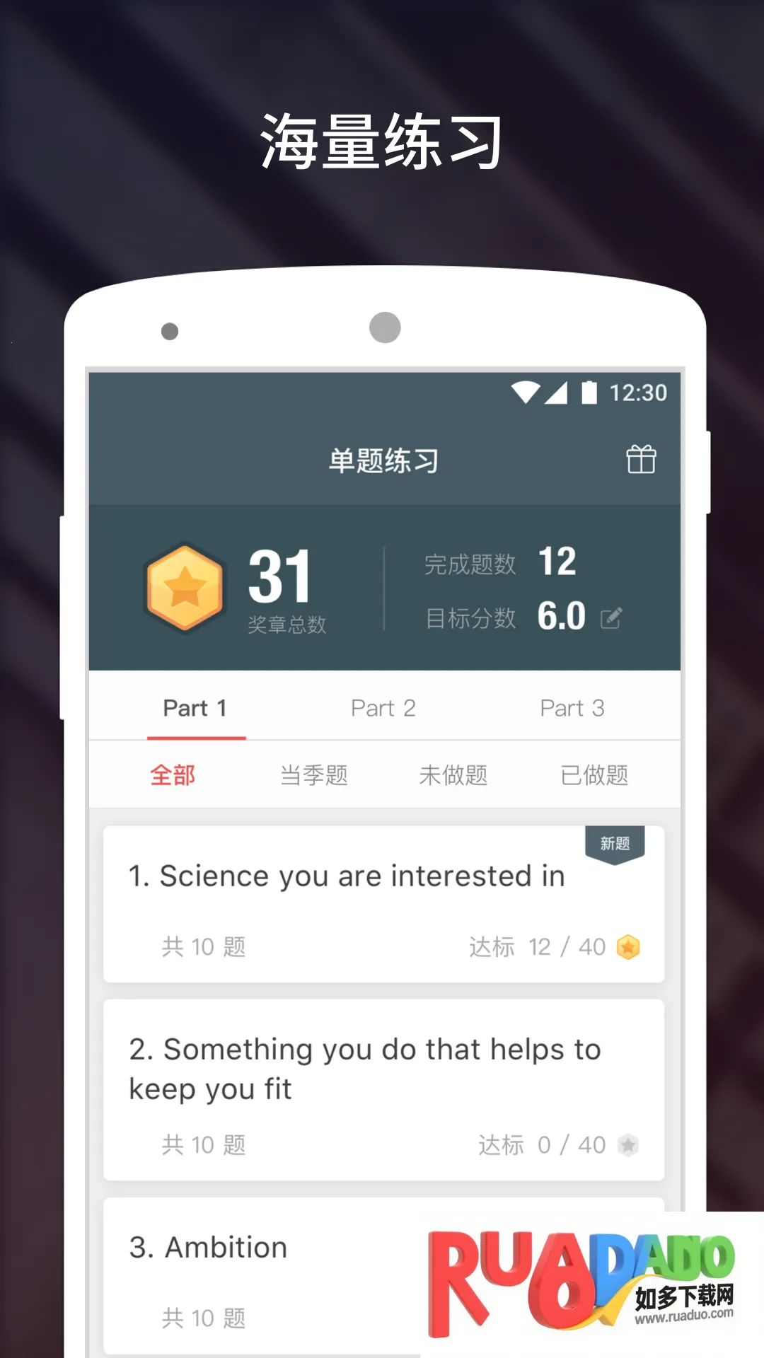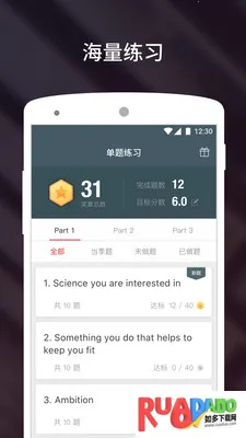流利说雅思是针对雅思考试研发的学习软件,提供百余套话题内容,有智能评估、个性化学习计划等功能。含多国考官模拟、权威报告纠错、即时反馈等特色,助用户提升英语水平,轻松备考雅思。