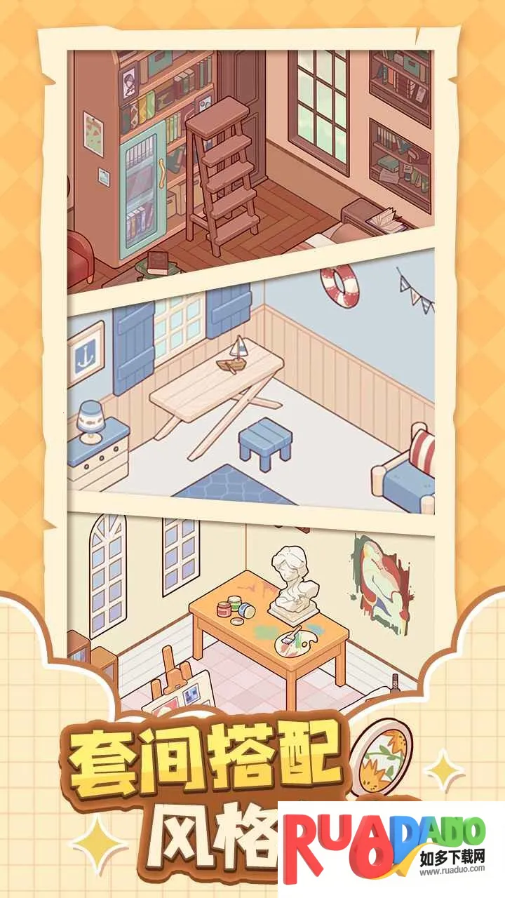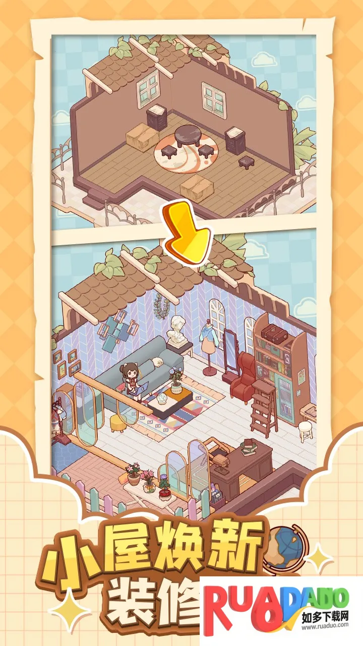 2. 增加装饰品可让小屋焕然一新,还能为角色进行个性化装扮。