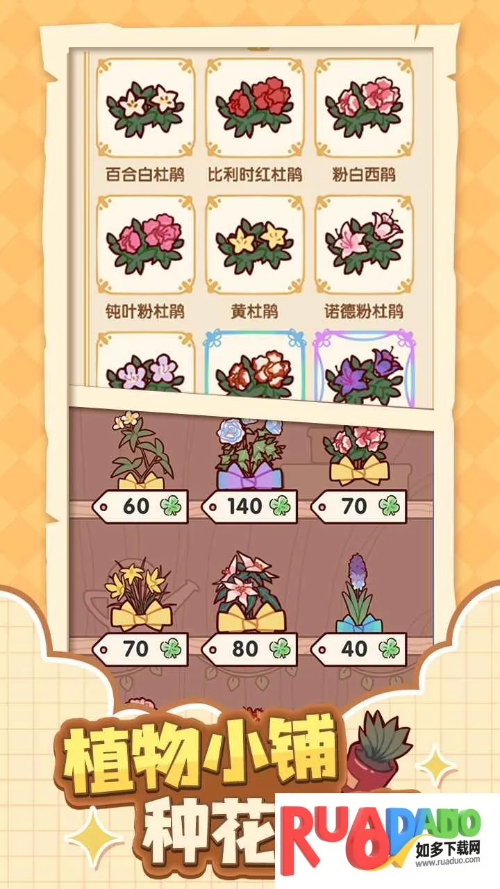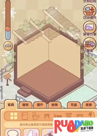 3. 能精心布置小屋,挑选喜欢的装饰品,还能为角色进行个性化装扮,也可自由选择花草种植。