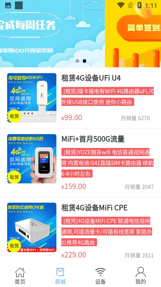 1、提供随身WiFi产品、智能监控等物联网电子产品在线购买,商品种类丰富。