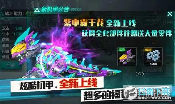 1、全新机甲:紫电霸王龙全新上线,有机会获全套部件与大量零件。