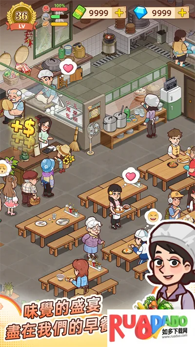3. 店内员工由玩家管理,合理安排工作,保证早餐店顺畅运行,顾客满意度满分。