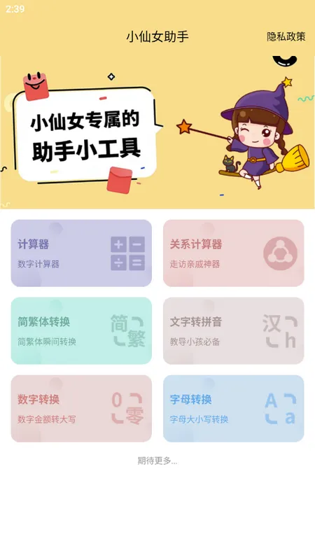 小仙女助手安卓版是一款多功能实用工具,涵盖常用计算、人机关系计算、文字转换等诸多功能。支持多种计算器,无广告环境纯净,还能添加桌面组件,满足日常工作生活不同需求,使用便捷。