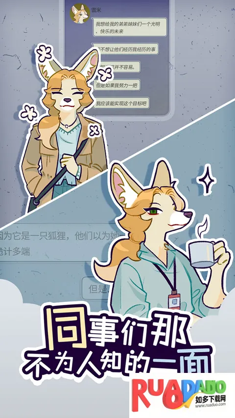 1. 独特职场剧情,玩家扮演职场新人推进剧情,与半兽人同事互动交流,感受不一样的职场体验。