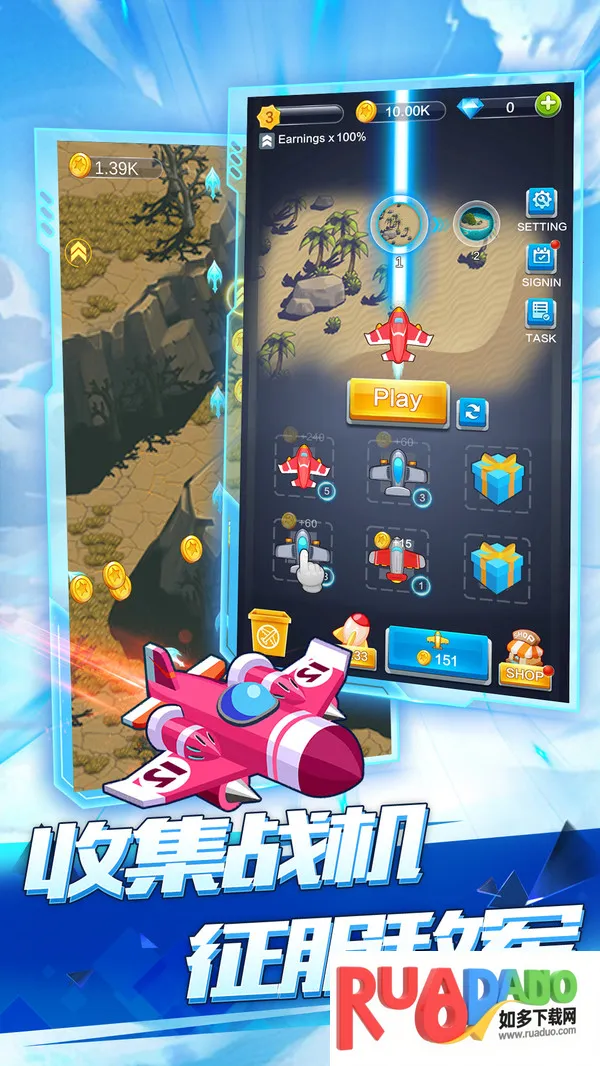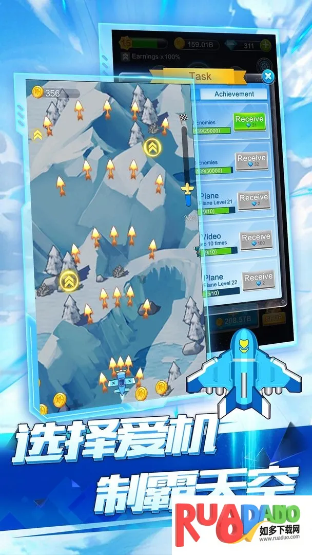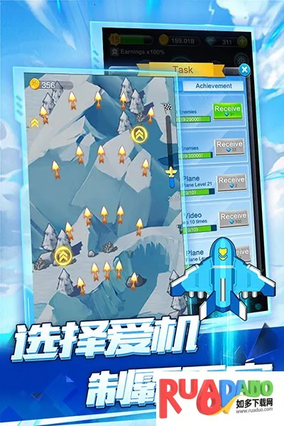 3. 有超华丽弹幕、流畅操作手感,还有多种精致豪华战机任你选择。