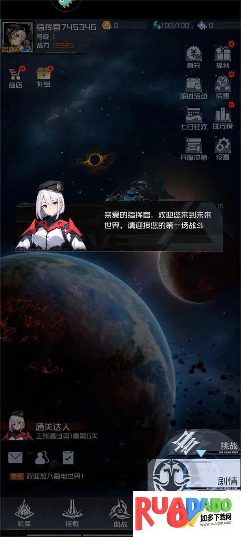 4、然后根据新手教程,点击剧情开始挑战;