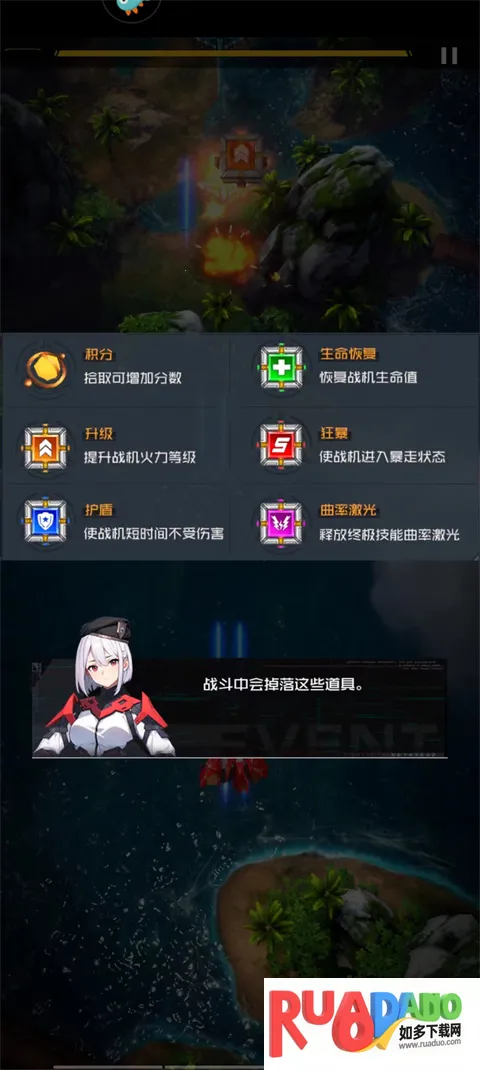 8、战斗中玩家击毙敌方战机就会掉落道具,玩家可以移动拾取;