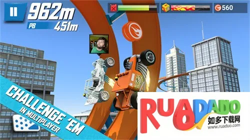 3. 构建橙色特技轨道网络,包含螺旋迴环与超级跳台等五十种特技模块,完美特技衔接可激活氮气加速状态