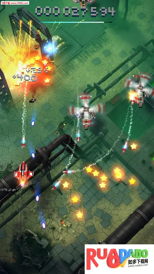 1、操作简易,手指滑动操控战机,松开降低速度,配合音效与爆炸效果,体验畅快。