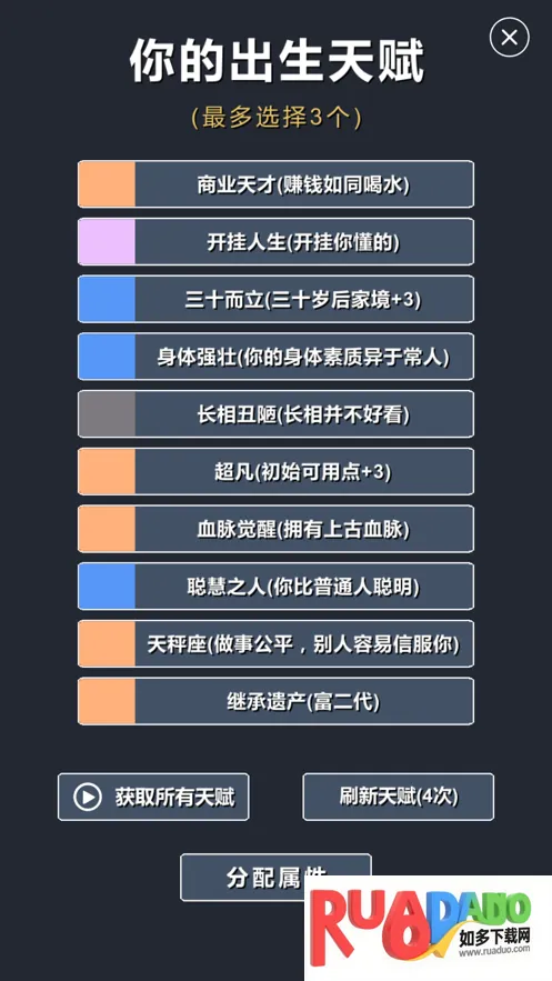 4. 开局随机,可能生于富豪或贫困家庭,有不同修仙天赋,也可能历经困境,最终目的是渡雷劫飞升仙界。