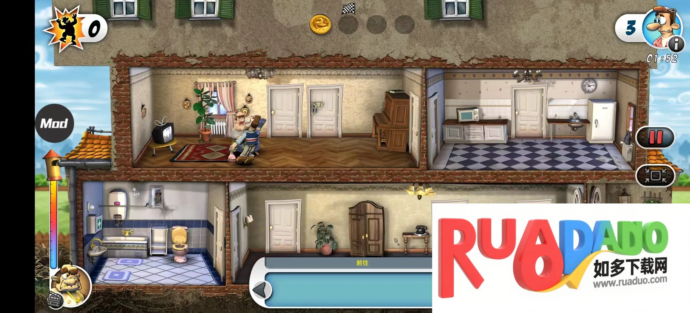 2. 有14个精彩刺激地图关卡,每关都有不同整蛊任务,需小心不被邻居发现。