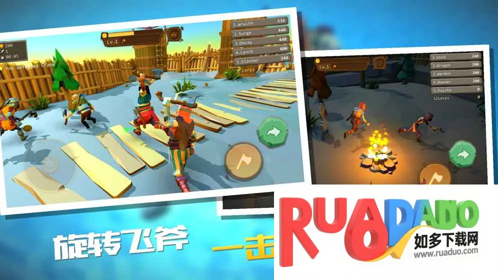 1. 玩法简单持久,投掷斧头杀敌人后捡起继续战斗,也能猥琐发育收集斧头连射。