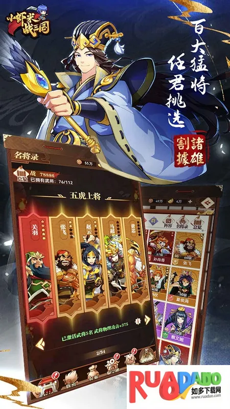 小虾米战三国是一款三国策略手游,玩家将经历董卓乱政到群雄并起的历史。以武将收集养成、资源经营发展为核心,有丰富剧情、多样玩法,能招募名将、搭配阵容、收集神兵,还有丰厚福利助快速成长。