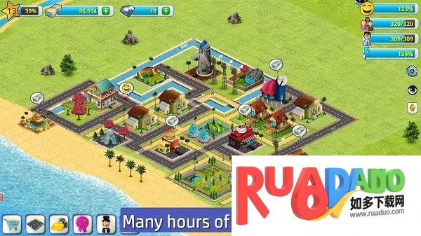 1. 开局于荒芜小岛,可从零开始创建城镇,完成各项任务,运用资金和材料打造建筑设施。