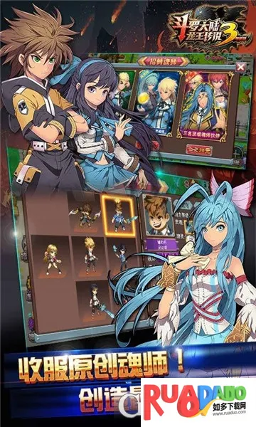 2. 梦幻画面效果:颠覆传统卡牌平面表现,人设完美,光影、特效华丽,BOSS造型超大,还原生机盎然的斗罗世界。