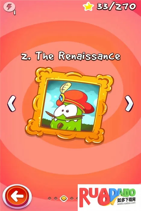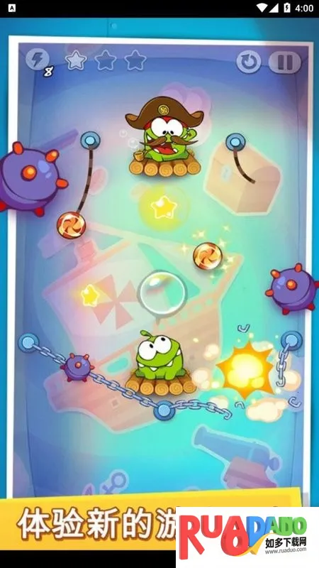 割绳子时光旅行是款有意思的休闲手游,玩法新颖,画质精美,关卡丰富。能与omnom穿越时空喂其祖先糖果,有新道具,配乐轻松,延续可爱画风,还新增场景要素,快来开启冒险。