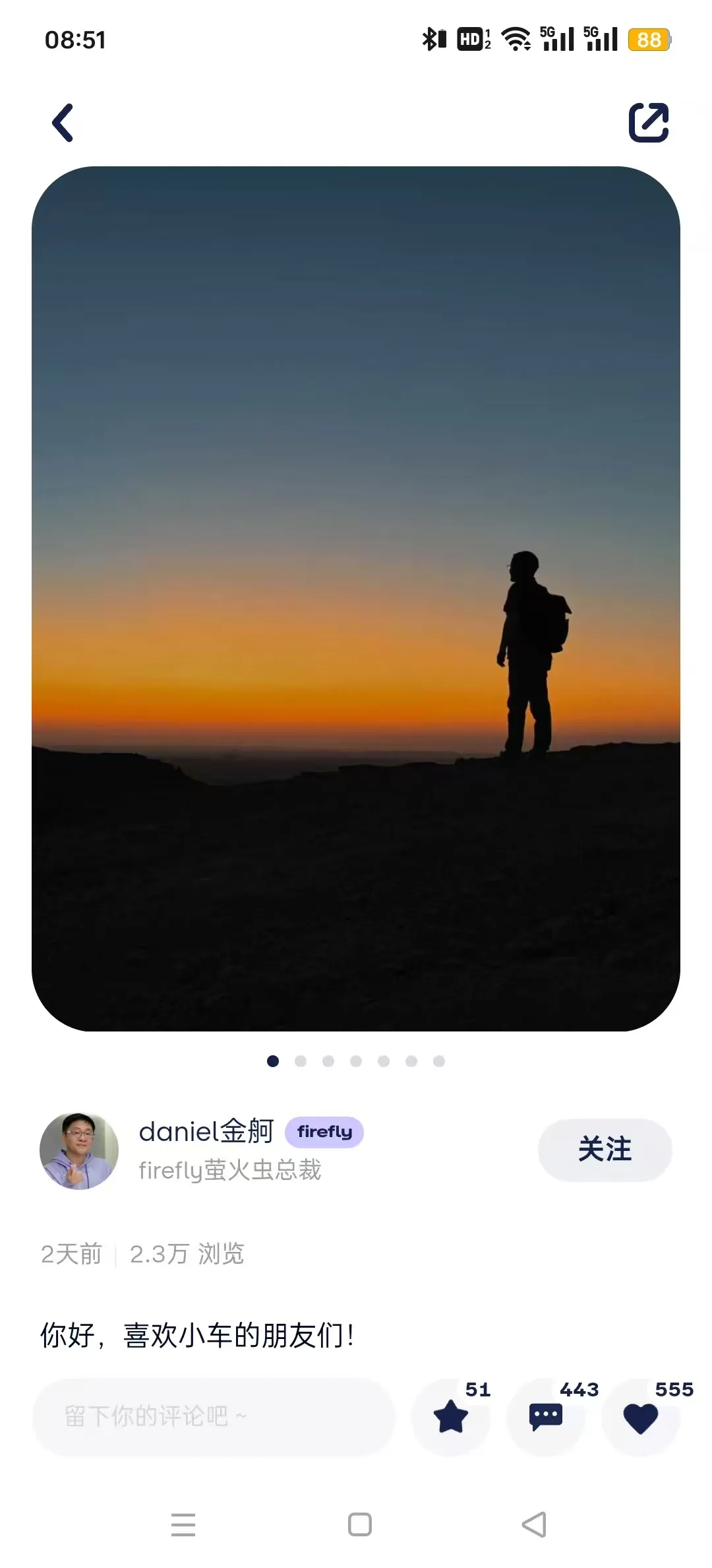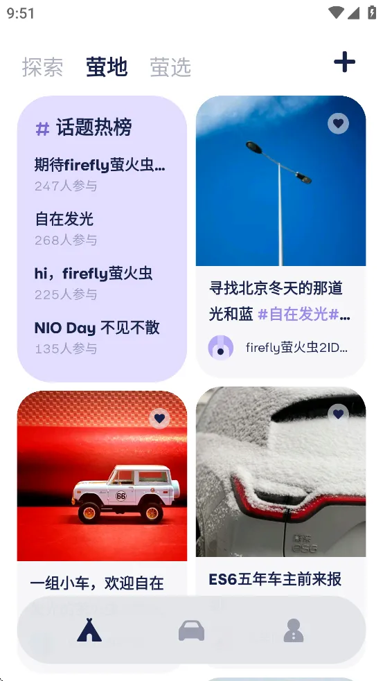 firefly萤火虫2025官方正版是蔚来旗下应用。可提供一站式汽车服务,涵盖官方资讯、车型浏览、试驾订购等。还有汽车商品选购与社区交流,支持福利活动,围绕多元生活打造自在体验 。