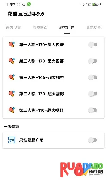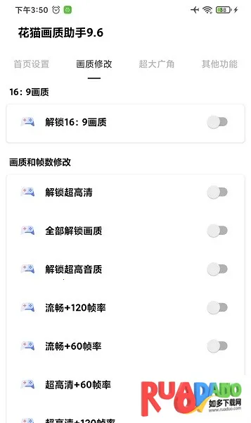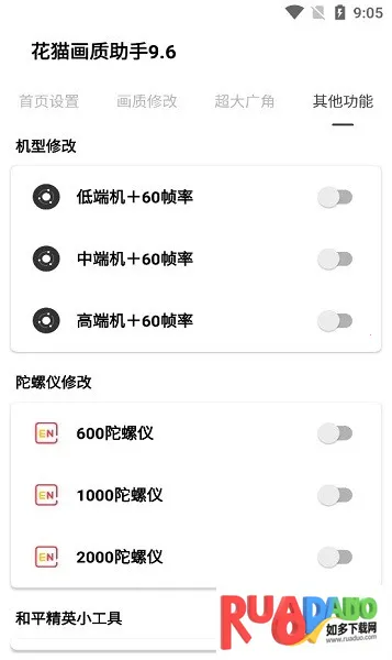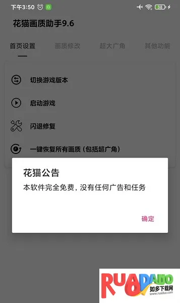 如果你想在游戏里体验更流畅、更清晰的画面,花猫画质助手就能帮到你。它能让你轻松调节游戏画质,比如解锁240帧。这是一款专为手机游戏玩家打造的辅助工具,无需root就能调节画质。对于热爱吃鸡等游戏的玩家来说,它特别实用。能帮玩家解锁最高帧率,提升低端手机画质到高清,增加游戏流畅度和视觉效果。一键就能换源画质,提高游戏稳定性能,不用担心封号。上手稳定又安全,各种画质都能切换。还支持自定义画质,能根据自己需求选择画质分辨率。在软件首页就能设置切换游戏版本、启动游戏闪退修复等功能。点击画质修改,可解锁多种画质帧率。点击超大视角,能设置不同视野。使用方法简单,开启就能用,能让你畅快享受游戏时刻。