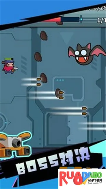 2. 玩家操控角色灵活走位,越过障碍物与陷阱,装备枪械武器瞄准扫射,击败敌军boss。