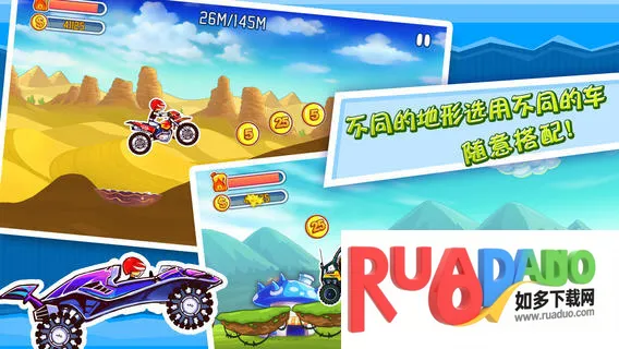 2. 横版地图轻松上手,保持车身平衡顺利过关。