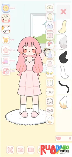 1. 服装丰富多样,有简单飘逸的连衣裙、各类上衣与配套裙子,颜色不一的袜子鞋子,还有各种发型,任由玩家自由选择搭配。