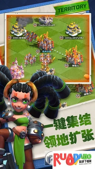 3. 一键集结领地扩张,能在世界地图呼朋引伴,不断扩大领地范围直至制霸全球。