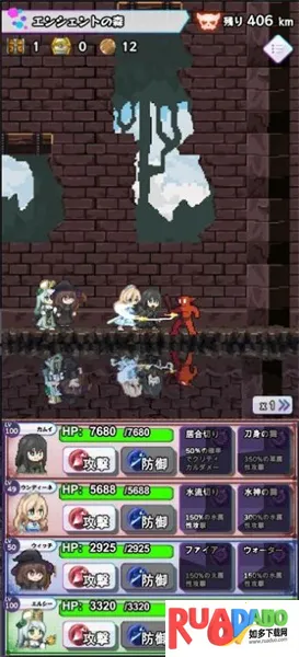 3. 角色和怪物有属性之分,包括火、水、草、暗、光5种,需看属性相合组队,还能通过四人聚会挑战地牢。