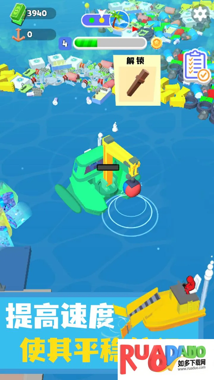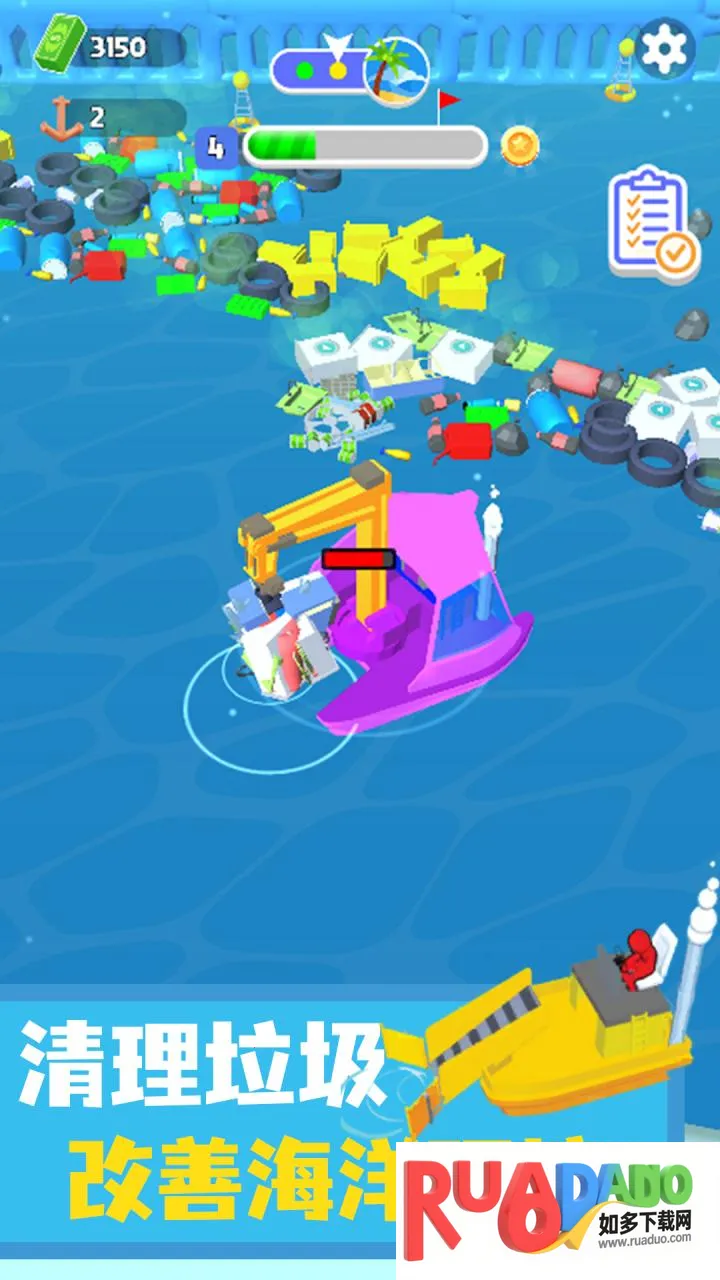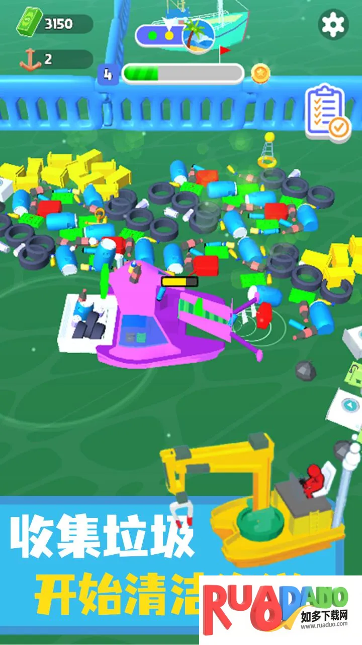 2. 玩法简单易懂,容易上手且十分有趣,还有多样功能,能升级收集船与道具,收集垃圾不枯燥。