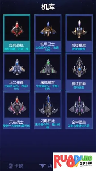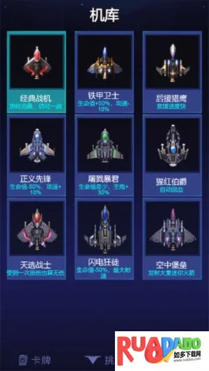 4. 战机款式多样,每款都有独特技能与特点,收集资源强化战机乐趣多。
