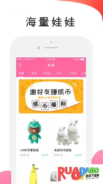 3. 在家就能抓娃娃,无需出门排队。还有丰富福利,每日登录领奖励,邀请好友双方得奖励,注册、登录都赠游戏币,还有限时福利。