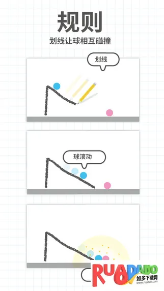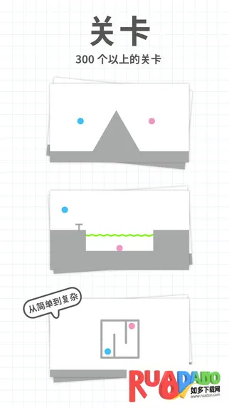 2. 游戏画风小巧精致,通过开动脑筋让两个小球相撞来闯关,玩法简单但通关不易。
