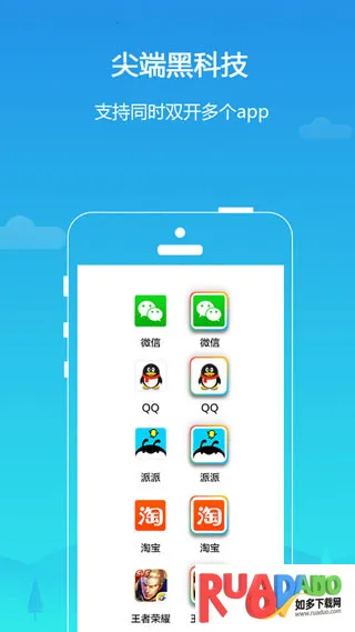 1. 全品类应用多开,社交、游戏、购物等各类应用均可双开或多开,满足多账号同时在线需求。